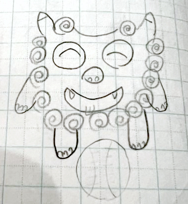 三間れんかさんの作品。沖縄のシーサーを描いた。